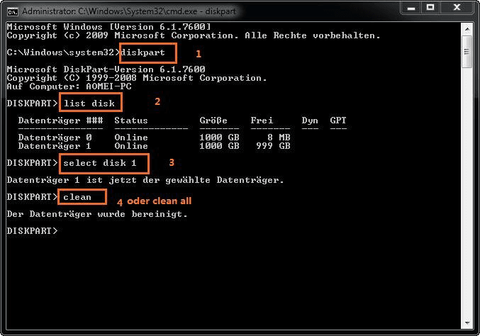 3. Type **`select disk #`** (# = for every disk number) and **`clean`** for every disk you have **except your Flash Drive**